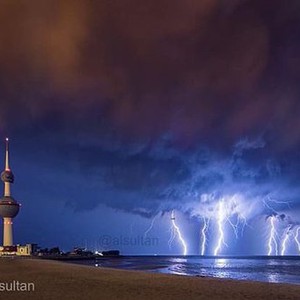 موجات برق شديدة تضىء سماء الكويت وسط أمطار غزيرة اليوم السابع